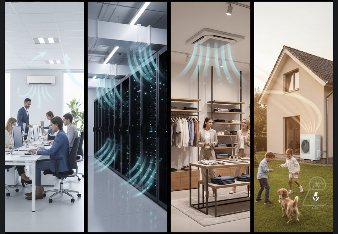 Niemand arbeitet gut bei 30°C im Büro. Wir installieren leise Split-Klimaanlagen die für angenehme 21-23°C sorgen – ohne Zugluft und störende Geräusche. Perfekt für Einzelbüros, Besprechungsräume oder ganze Büroetagen.